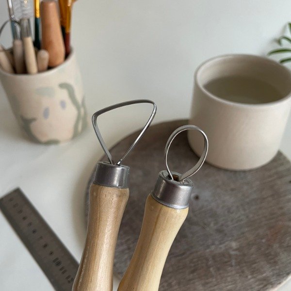 Combo de dos desbastadores rígidos de cinta metálica con mango de madera.